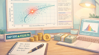 「S&P500一本」は数学的に正解か?Pythonによるシミュレーションで、ビットコインや金を入れた場合の効率(シャープレシオ)を検証。導き出された「数学的最適解」と、それを超える現実的な「S&P500+現金」戦略について、エンジニア視点で解説します。