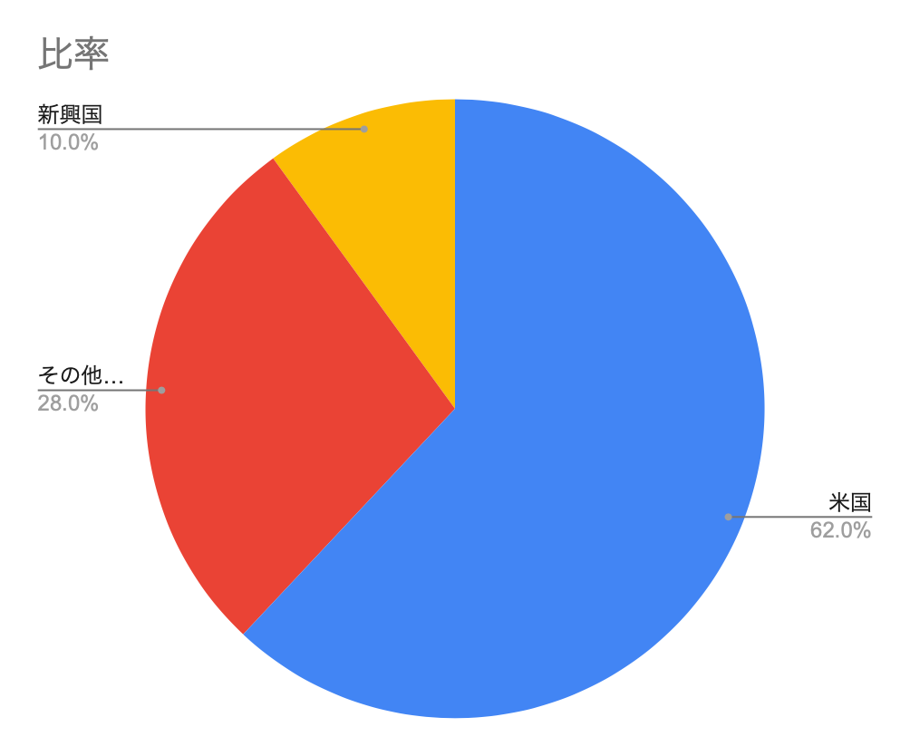 まず、スペック(中身)の確認です。 「全世界」という響きから、地球上の国々に均等に投資しているイメージを持つかもしれませんが、実態は異なります。