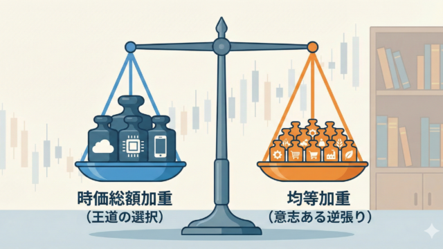 インデックスファンド インデックス投資の「中身」を理解する S&P500が採用する「時価総額加重」と、FANG+などの「均等加重」。実は均等加重が「強制的な逆張り」であることを知っていますか?両者の仕組みとリスクの違いをデータで検証し、納得感のある選び方を解説します。 2026.01.08 インデックスファンド投資戦略米国株投資